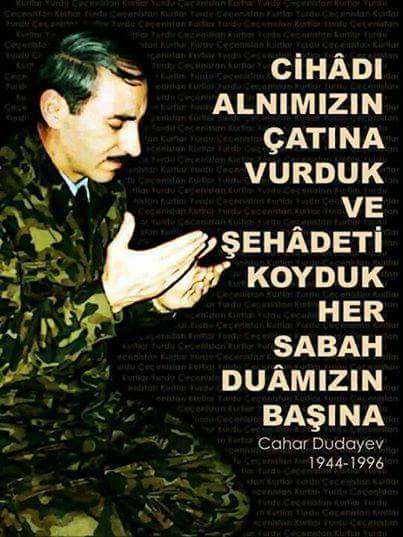 Şehâdetinin seneyi devriyesinde Çeçen Lideri Şehit General Cahar Dudayev'i saygı ve rahmetle anıyoruz... Savaşa karşıyım ancak haksızlığa karşı savaşmak karakterimdir.. Cahar Dudayev..