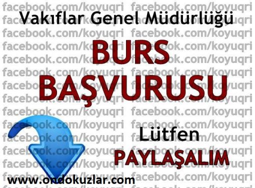 PAYLAŞIN VE ÇEVRENİZE HABER VERİN LÜTFEN VAKIFLAR GENEL MÜDÜRLÜĞÜNÜN BURS BAŞVURULARI İLK ÖĞRETİM VE LİSELERDE OKUYAN ÖĞRENCİLER İÇİN BAŞLAMIŞTIR. BAŞVURU SÜRESİ BİR HAFTADIR. LÜTFEN PAYLAŞALIM, İHTİYAÇ SAHİBİ ÖĞRENCİLERİMİZE ULAŞILMASINA YARDIMCI OLALIM.