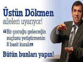 Geleceğin suçlusunu yetiştirmenin 8 basit kuralı… 1. Küçükken daha, çocuğa ne isterse vermeye başla! Ki herkesin onun geçimini sağlamakla mükellef olduğuna inansın… 2. Fena sözler söylediğinde gül! Ki, kendisinin akıllı olduğuna inansın… 3. Ona düşünmeyi, beynini kullanmayı öğretme sakın! Bırak, on sekizine gelince kendisi karar versin… 4. Yerde bıraktığı her şeyi kaldır: kitaplarını, giysilerini, pabuçlarını…Onun için her şeyi sen yap! Ki sorumlulukları hep başkalarına yüklesin… 5. Onun önünde sık sık kavga et! Ki bir gün aile parçalanırsa pek de şaşırmasın… 6. Ona istediği kadar harçlık vermekten kaçınma! Asla kendi parasını kazanmanın ne demek olduğunu öğrenmesin… 7. Yiyecekmiş, içecekmiş, konformuş, tüm arzularını yerine getir! Ki istediklerini her zaman elde etmeye şartlansın… 8. Komşulara, öğretmenlere, polise, vs. karşı hep onun tarafında ol! Ki hepsine karşı önyargılarla davransın… Üstün DÖKMEN Piramit Haber (ALINTI)