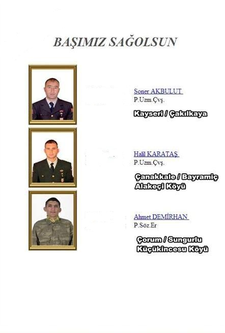 05 MAYIS 2014 Tarihin de HAKKÂRİ ili Şemdinli ilçesinde zırhlı aracın uçuruma yuvarlanması sonucu: ''Piyade Uzman Çavuş Soner Akbulut Piyade Uzman Çavuş Halil Karataş