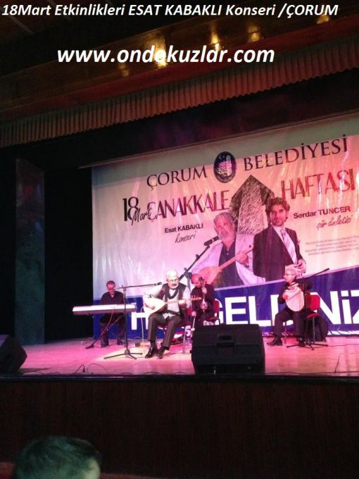 ÇORUM BELEDİYESİ 18 MART ÇANAKKALE ZAFERİ ETKİNLİKLERİ KAPSAMINDA MEMLEKETİMİZDE KONSER VEREN SAYIN ESAT KABAKLI HOCA YA TEŞEKKÜR EDER;SAYGILAR SUNARIZ.
