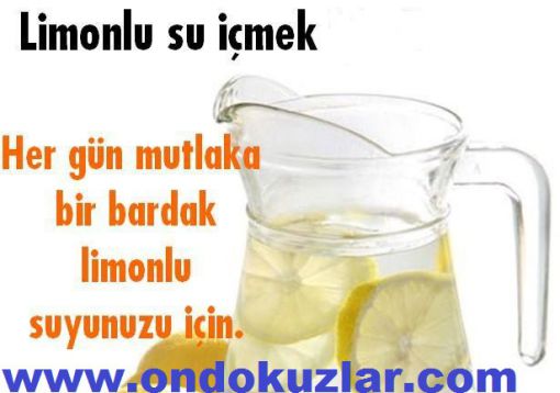 Limonlu su içmek için 8 neden Her gün mutlaka bir bardak limonlu suyunuzu için. 1. Cildinizi temizler Su içmek kendi başına vücudunuzu toksinlerden arındırır ama içine C vitamini eklendiğinde kanınızdaki toksinleri de temizlenir ve cildiniz kızarıklıklardan ve ince çizgilerden kurtulur.