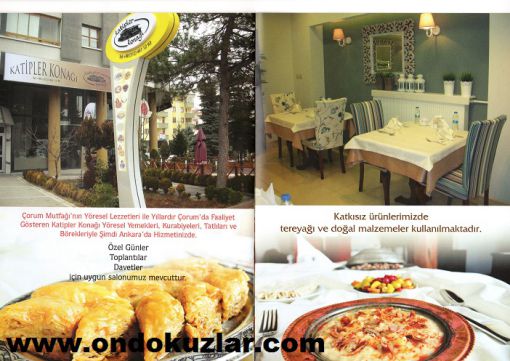 ANKARA ÇANKAYA TURAN GÜNEŞ BULVARI NDA HİZMET VEREN KATİPLER KONAĞI İŞLETMECİSİ EFZA YILMAZ HANIMEFENDİ YE HAYIRLI KAZANÇLAR DİLERİZ.NEZİH BİR ORTAMDA ÇORUM LEZZETLERİNİ TATMAK İSTEYEN HEMŞEHRİLERİMİZE TAVSİYE EDERİZ.