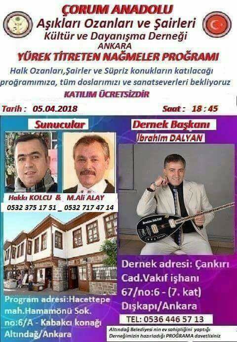 ÇORUM ANADOLU AŞIKLAR DERNEĞİ - 04/04/2018