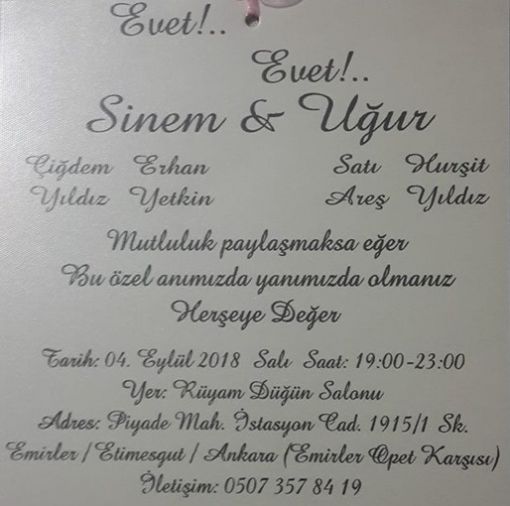 BEKİR VE SANİYE ATEŞ İN KIZI SATI ATEŞ İN OĞLU UĞUR UN DÜĞÜNÜ NE TÜM HEMŞEHRİLERİMİZ DAVETLİDİR.GENÇLERİMİZE MUTLULUKLAR DİLERİZ.