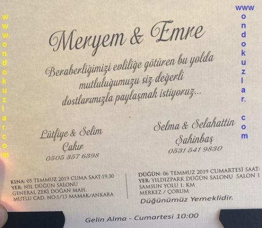 EVLATLARIMIZIN DÜĞÜN TÖRENLERİNDE SİZLERİ DE ARAMIZDA GÖRMEKTEN MUTLULUK DUYACAĞIZ.