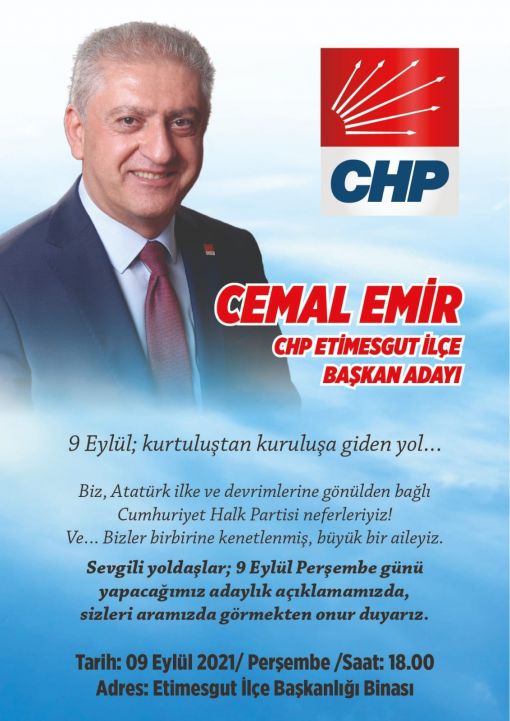 HEMŞEHRİMİZ AVUKAT CEMAL EMİR İN CHP ETİMESGUT İLÇE BAŞKAN ADAYLIĞININ HAYIRLI OLMASINI TEMENNİ EDER,BAŞARILAR DİLERİZ.